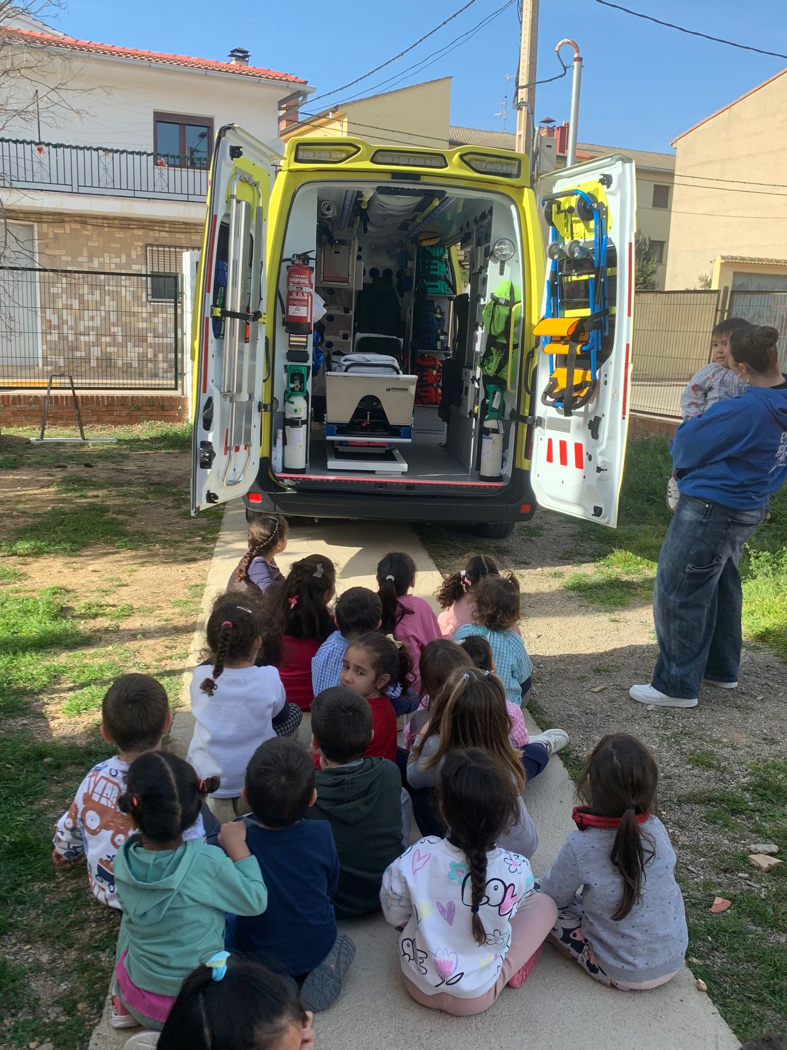 En el aula de música nos ha explicado que cosas necesita para su trabajo y después nos ha dado una gran sorpresa ¡han venido sus compañeros con la ambulancia y hemos podido subir y ver como es una ambulancia por dentro!